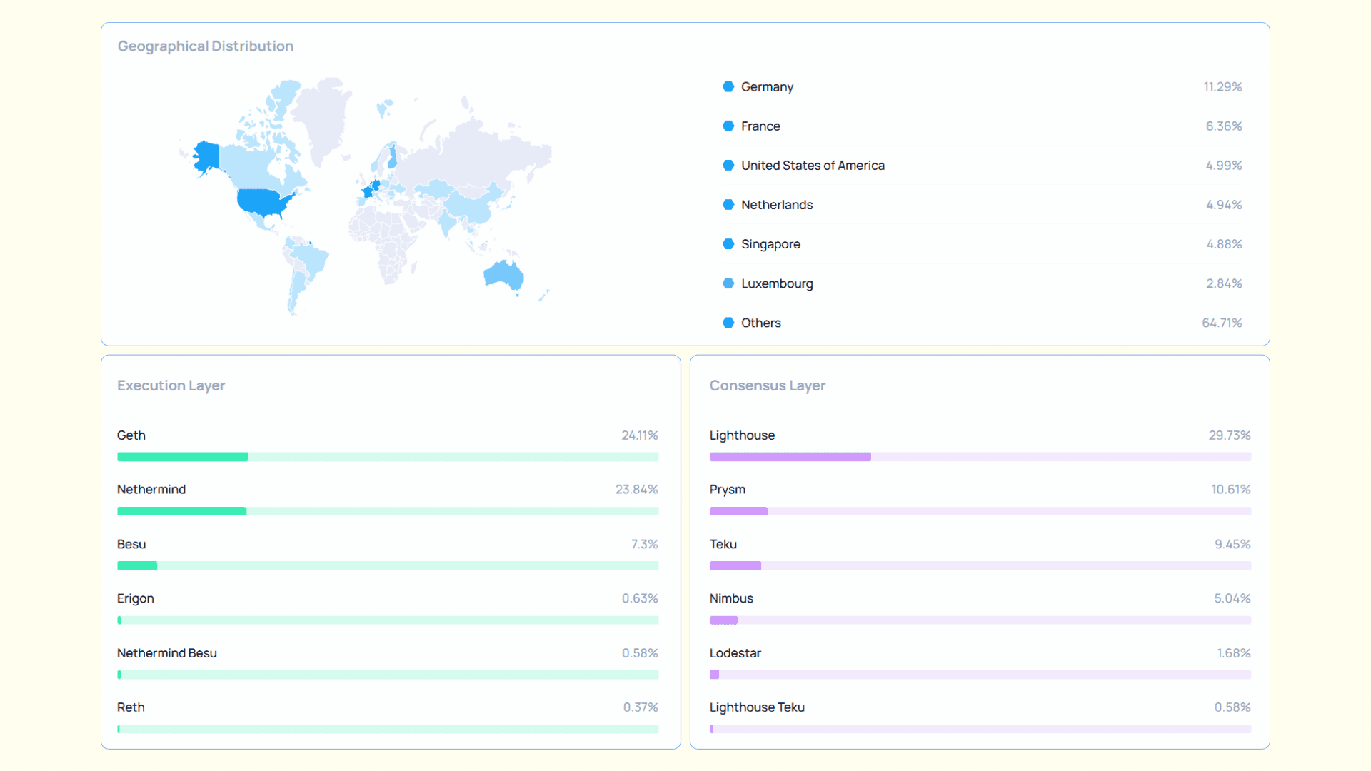 SSV Network is the leading DVT provider on Ethereum, securing ~6M ETH, accounting for ~16% of all ETH staked. This monumental amount of ETH (deposited to approximately 136k registered validators) is run in a decentralized manner by 1900 globally distributed node operators, each using different infrastructure solutions, e.g., cloud and bare-metal. As well as execution, consensus, and validator clients.